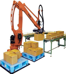 机器人码垛系统是一种智能高效的码垛机。随着工业芯片技术上的发展及AI技术的进步,机器人的智能性已经代替人类的初步劳动,机器人码垛机构灵活轻便,是工厂的明智选择